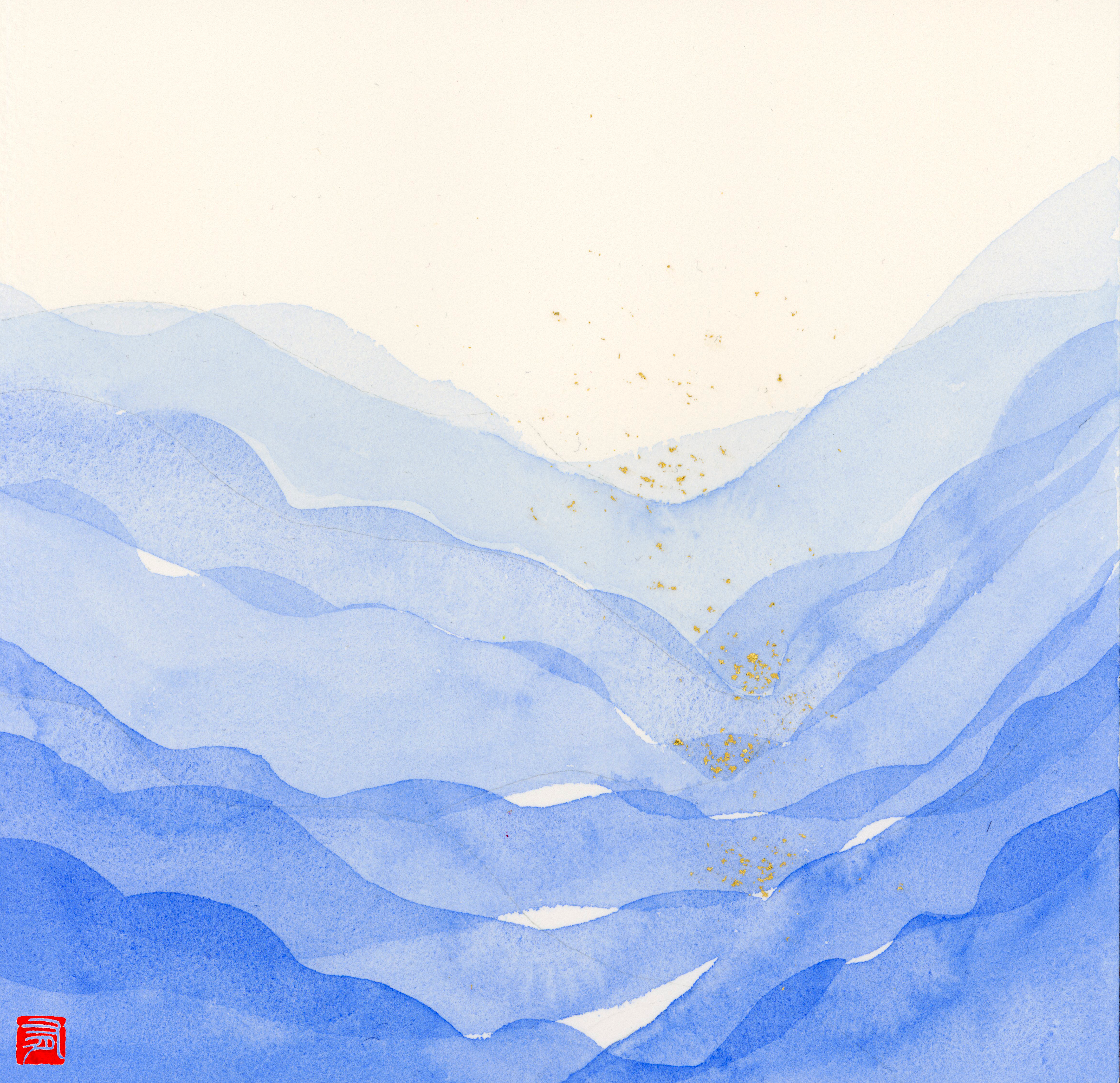Aquarelle originale “Echos des montagnes n°1”, Collection “Yohaku, entre brume et lumière”, 2025