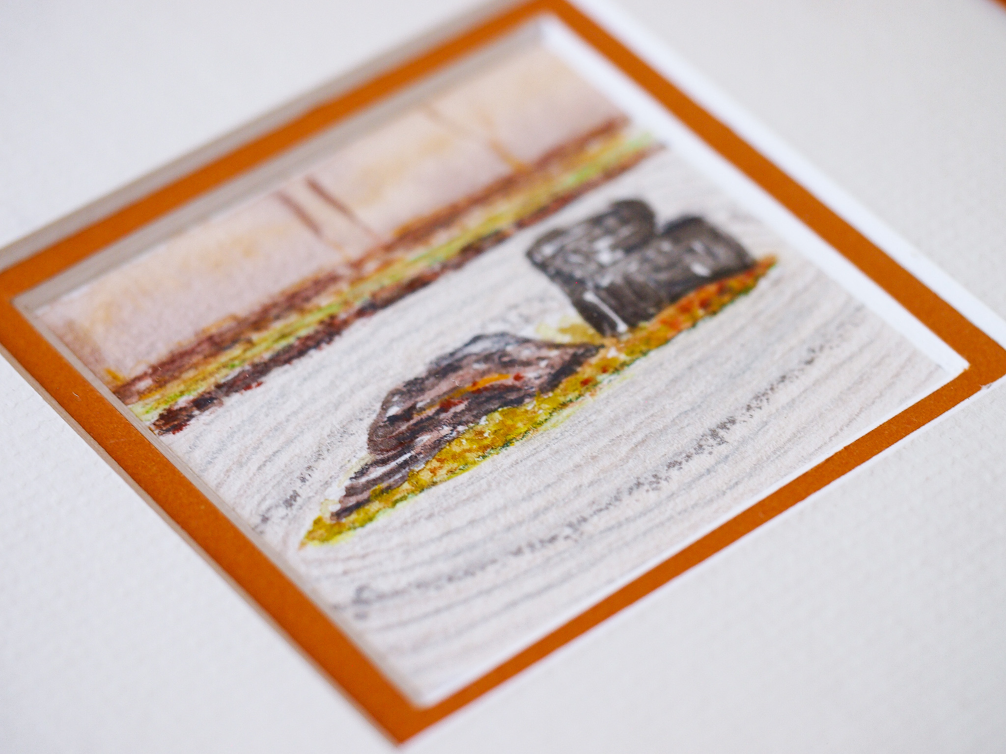∇ Oeuvre originale vendue avec son encadrement sur-mesure (double passe-partout et cadres)