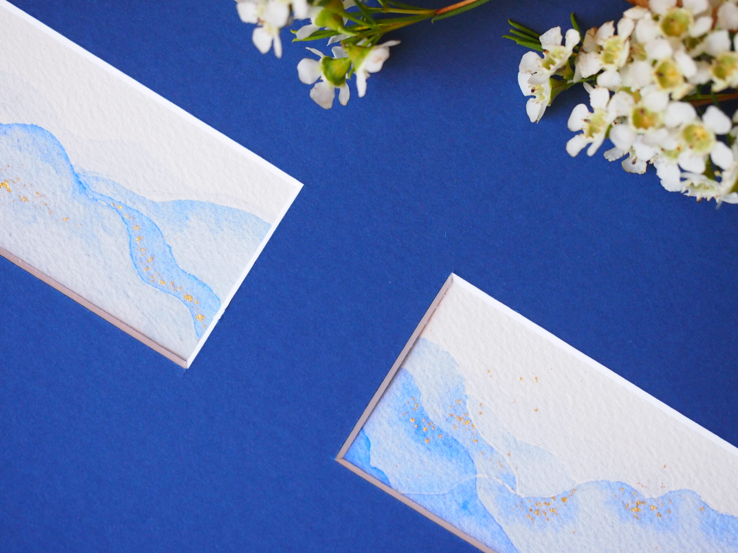 Aquarelle originale (triptyque) avec ajout de fragments de feuilles d’or de Kanazawa.