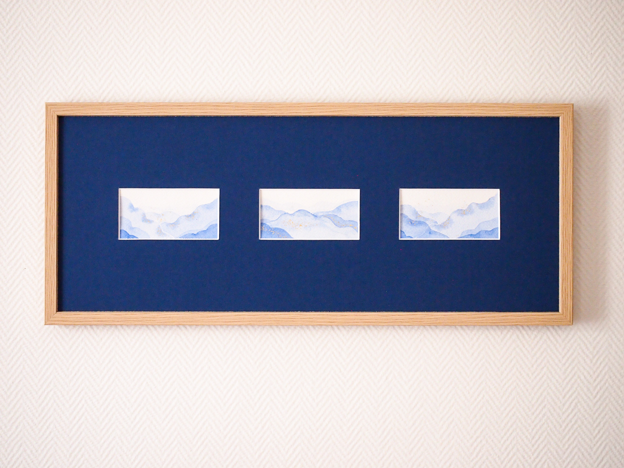 Aquarelle originale Triptyque Ombres des montagnes n°3 – Oeuvre originale unique (pas de tirages d’art), Collection “Yohaku, entre brume et lumière”