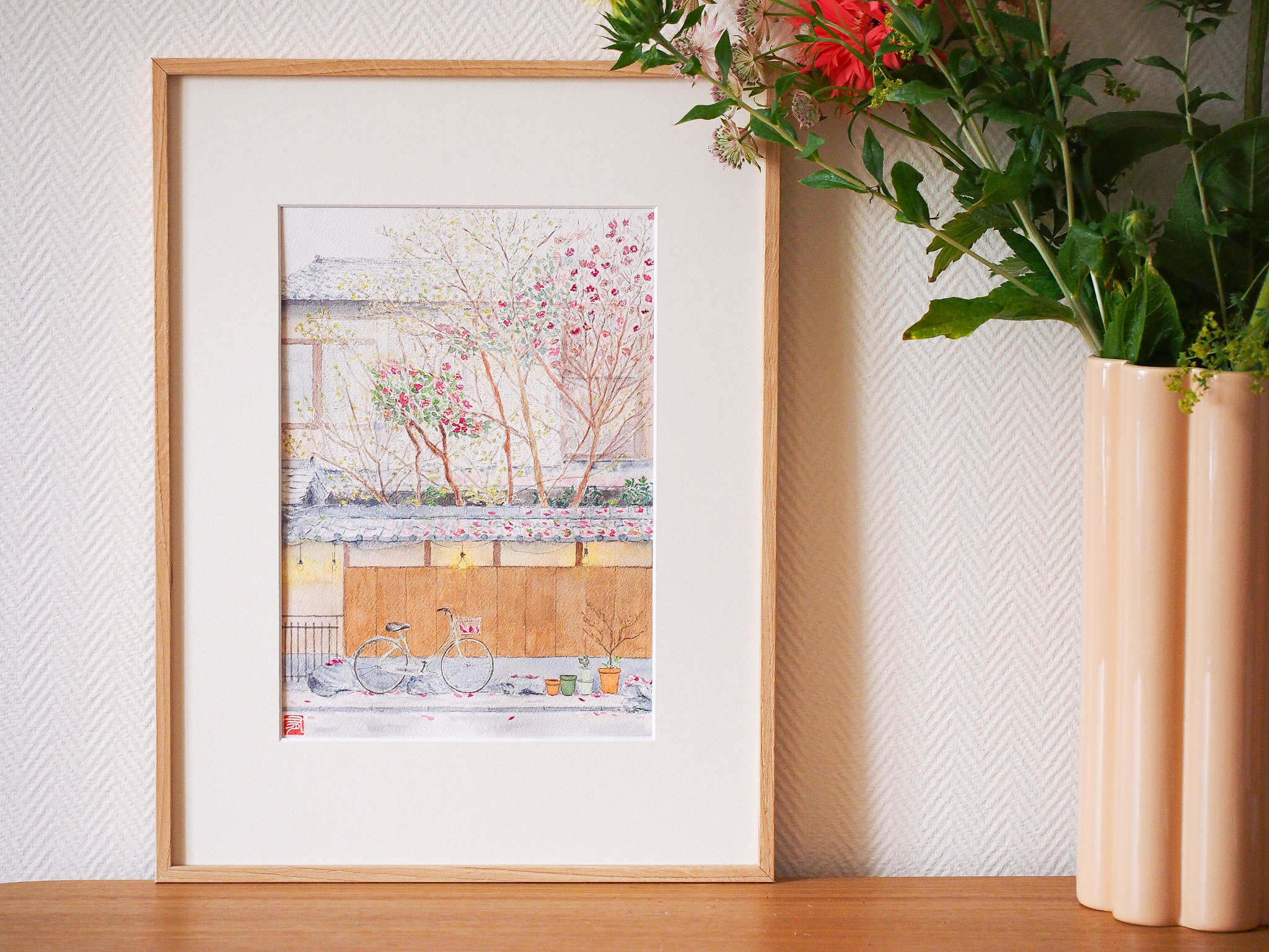 ∇ Cette édition d’art Aquarelle “Les derniers camélias 名残の椿” est une impression professionnelle pigmentaire de très haute qualité, réalisée à Paris.